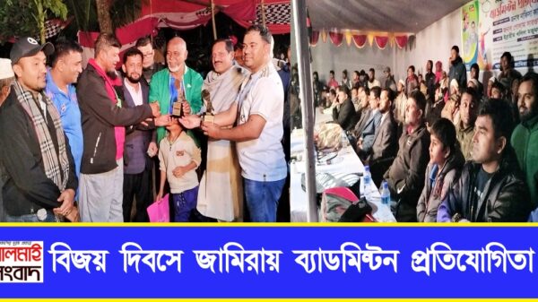 গাজী মামুন, লালমাই।। শেষ হলো কুমিল্লার লালমাই উপজেলার ভূলইন দক্ষিণ ইউনিয়নের জামিরা গ্রামে মহান বিজয় দিবস-২০২৩ উপলক্ষে আয়োজিত ব্যাডমিন্টন প্রতিযোগিতা। জামিরা গ্রামের যুব সমাজের উদ্যোগে শনিবার সন্ধ্যায় মজুমদার বাড়ি সংলগ্ন