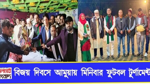 গাজী মামুন, লালমাই।। ১৬ ডিসেম্বর মহান বিজয় উপলক্ষে কুমিল্লার লালমাই উপজেলার ভূলইন দক্ষিণ ইউনিয়নের আমুয়া গ্রামে মিনিবার ফুটবল টুর্ণামেন্টের ফাইনাল খেলা অনুষ্ঠিত হয়েছে। আমুয়া গ্রামবাসীর উদ্যোগে শনিবার সন্ধ্যায় আমুয়া চৌমুহনী